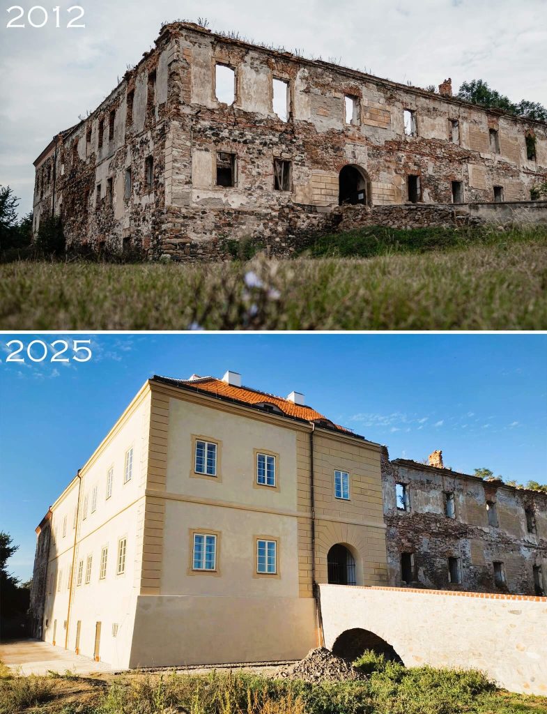 „Dzięki wsparciu dotacji odrestaurowali połowę zabytku, przygotowali interaktywną wystawę i na stałe udostępnili zamek publiczności.” (https://chomutovsky.denik.cz/zpravy_region/petipsy-zamek-zricenina-oprava.html)
