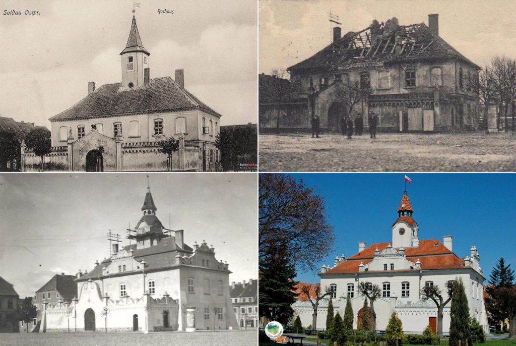Ratusz w Działdowie przed wojną, w roku 1914, w 1923 oraz współcześnie (foto: perłypolski.pl).