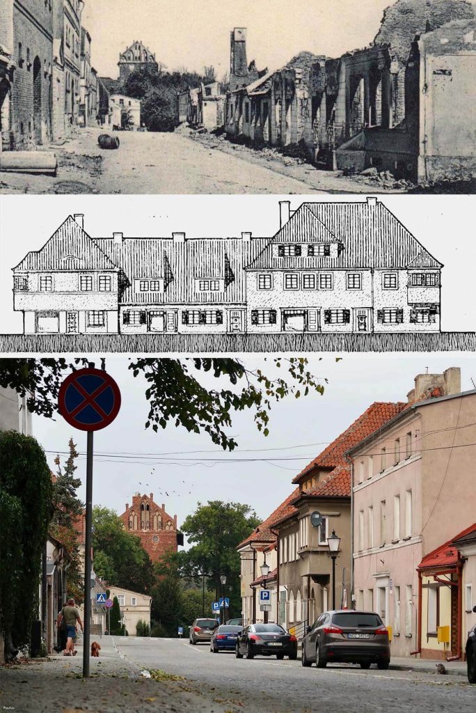 Ulica Młyńska w Działdowie w 1916 roku i współcześnie (foto: Paulus).