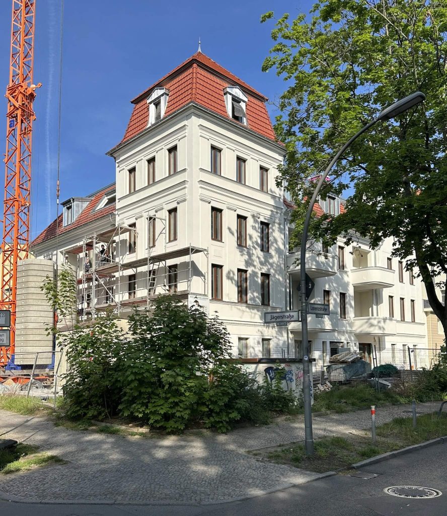 „Dom nawiązuje do typowego dla dzielnicy stylu architektury z „okresu założycielskiego” (Gründerzeit). W zgodzie z zachowaną zabudową tego skrzyżowania przejęto charakterystyczne zaakcentowanie narożnika z wieżyczką w tym budynku mieszkalno‑usługowym (11 mieszkań i dwa lokale usługowe), aby uzyskać spójny efekt urbanistyczny.”